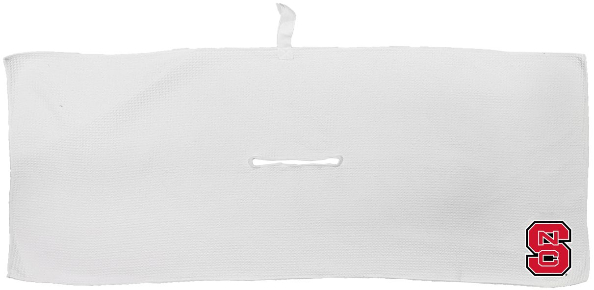 North Carolina State Wolfpack Large Microfiber Towel - 16" x 40" (White) Carabiner attachment system, Measures approx. 16'' x 40'', Sublimated graphics, Center slit measures approx. 6" in diameter, Fabric loop, Material: 85% Polyester/15% Polyamide, Machine wash, tumble dry low, Officially licensed