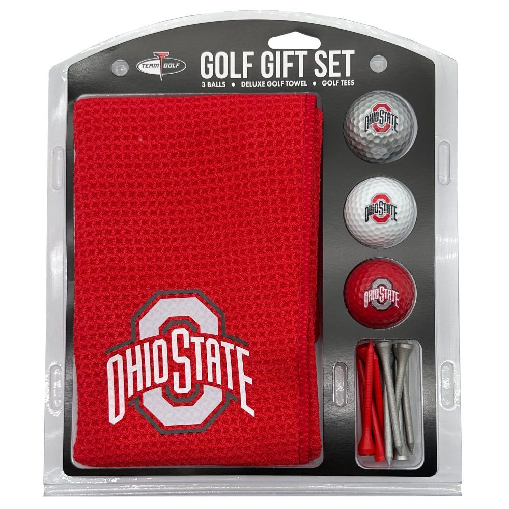 Ohio State Buckeyes Microfiber Towel Gift Set - 16 x 40 (Colored) 16” x 40” printed logo towel, 3 different color golf balls, 12 golf tees, High quality digital print