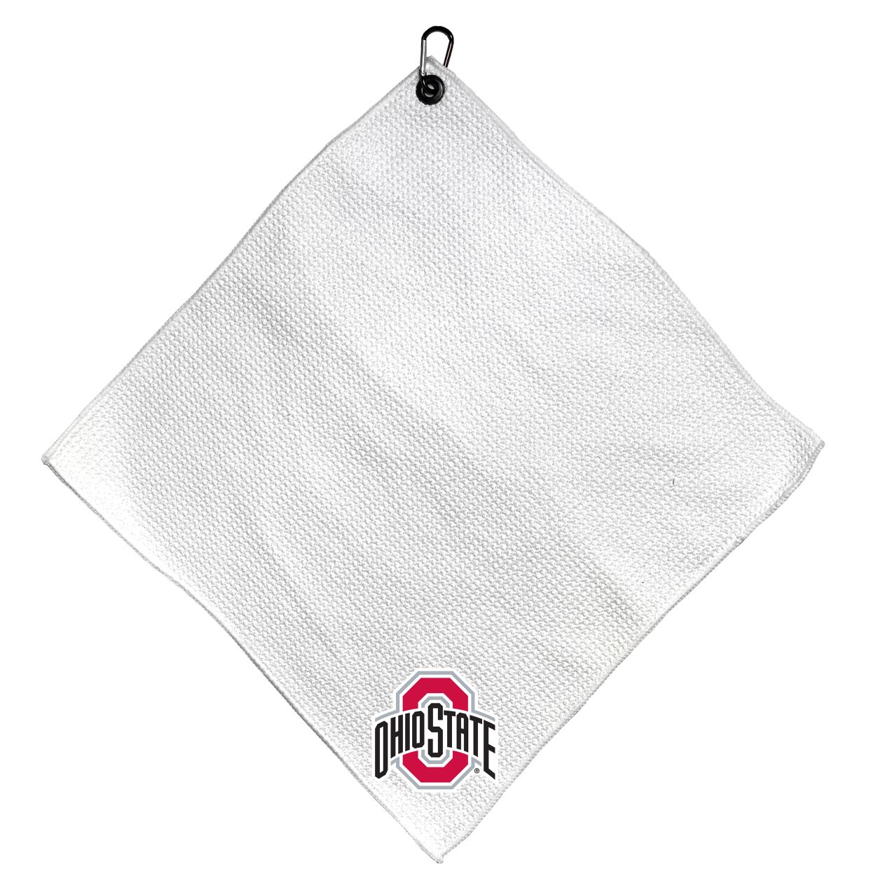 Ohio State Buckeyes Microfiber Small Towel - 15" x 15" (White) Carabiner attached, Measures approx. 15" x 15", Cleans without scratching club surface, Printed graphics, Material: 85% Polyester/15% Polyamide, Woven waffle fabric, Machine wash, tumble dry low, Officially licensed