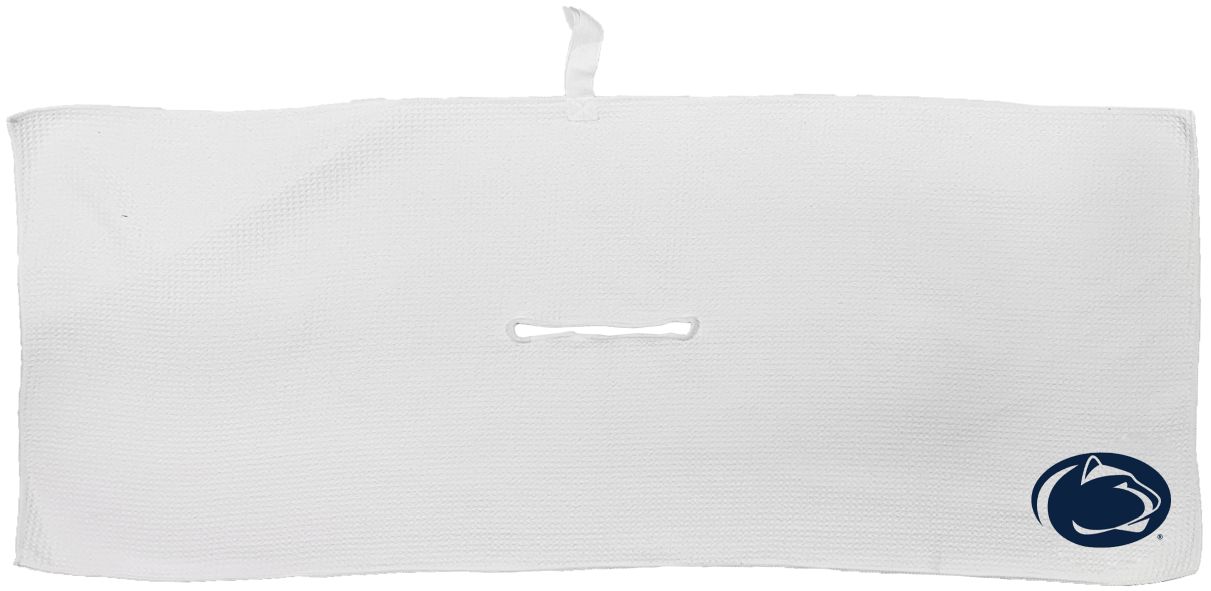 Penn State Nittany Lions Large Microfiber Towel - 16" x 40" (White) Carabiner attachment system, Measures approx. 16'' x 40'', Sublimated graphics, Center slit measures approx. 6" in diameter, Fabric loop, Material: 85% Polyester/15% Polyamide, Machine wash, tumble dry low, Officially licensed
