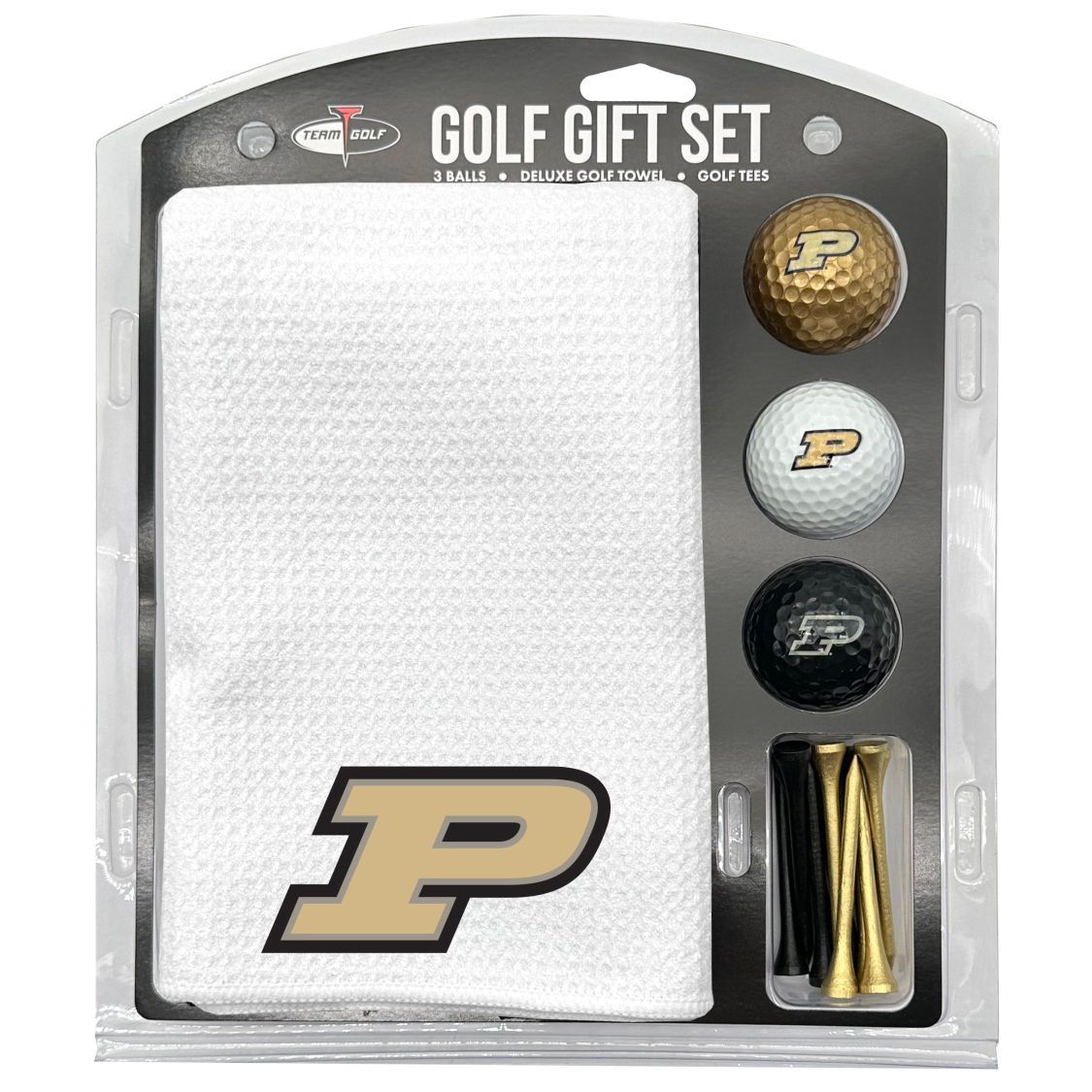 Purdue Boilermakers Microfiber Towel Gift Set - 16 x 40 (White) 16” x 40” printed logo towel, 3 different color golf balls, 12 golf tees, High quality digital print
