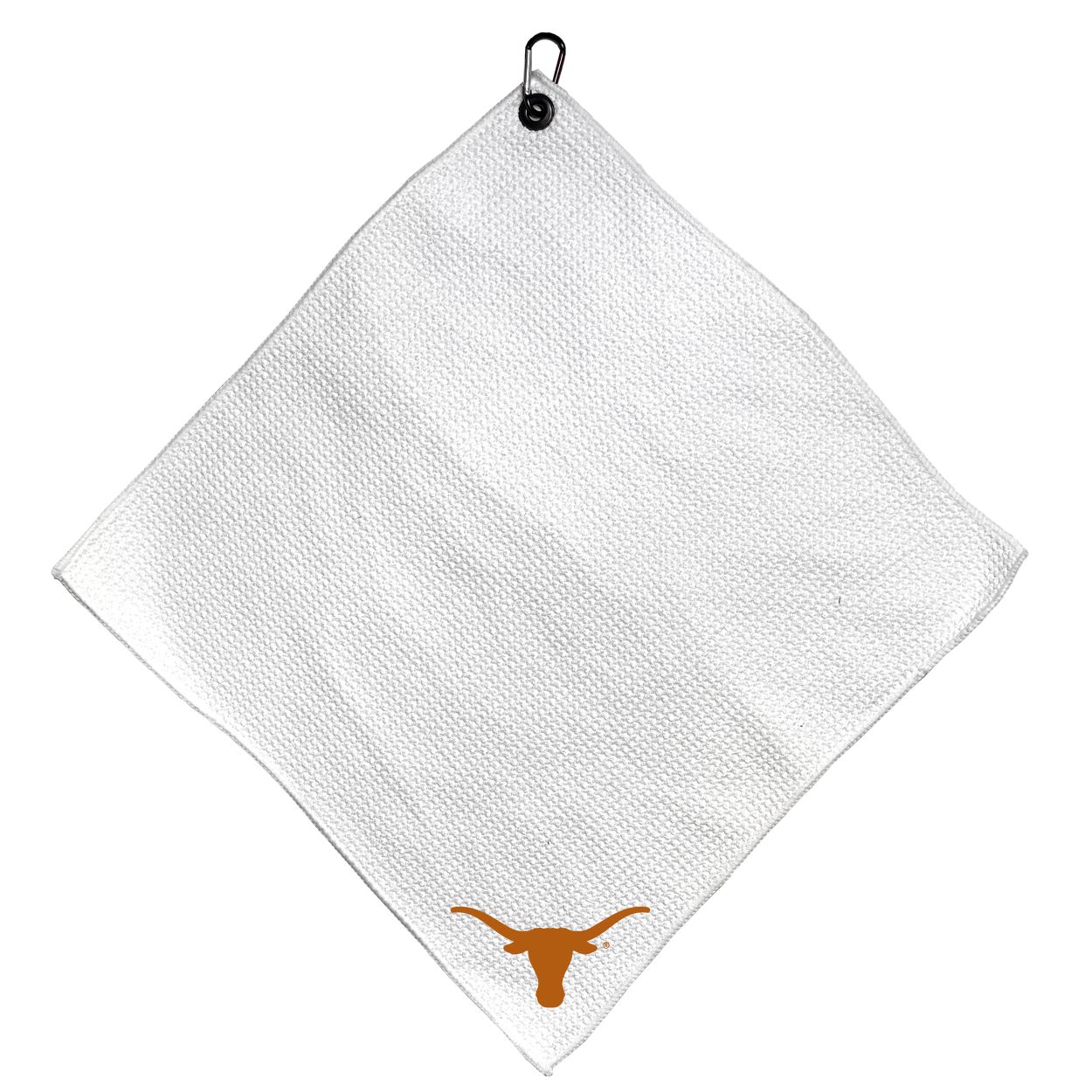 Texas Longhorns Microfiber Small Towel - 15" x 15" (White) Carabiner attached, Measures approx. 15" x 15", Cleans without scratching club surface, Printed graphics, Material: 85% Polyester/15% Polyamide, Woven waffle fabric, Machine wash, tumble dry low, Officially licensed