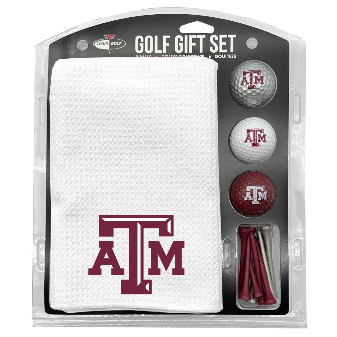 Texas A&M Aggies Microfiber Towel Gift Set - 16 x 40 (White) 16” x 40” printed logo towel, 3 different color golf balls, 12 golf tees, High quality digital print