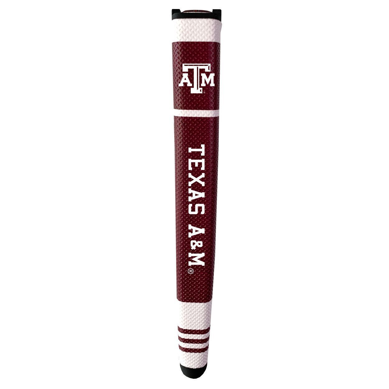 Texas A&M Aggies Putter Grip (Colored with white stripes) Durable rubber construction, Measures approx. 12.5" x 3.5" x 2", Printed graphics, Soft polyurethane surface, Includes removable ball marker, Debossed design, Material: 85% Rubber/15% PVC