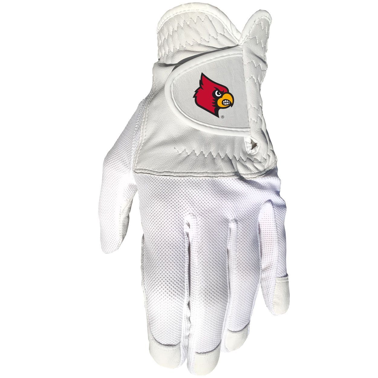 Louisville Cardinals Cool mesh with cabretta leather - one size - mens left 100% cabretta leather palm and finger tips, High quality digital print, Fits most hand sizes, Left hand only (for right handed golfers), Great gift for the golfer in your life!