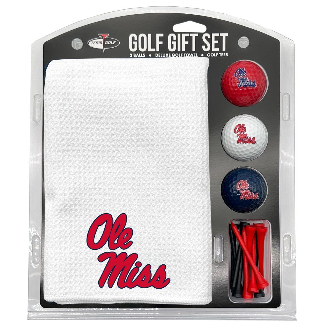 Mississippi Rebels Microfiber Towel Gift Set - 16 x 40 (White) 16” x 40” printed logo towel, 3 different color golf balls, 12 golf tees, High quality digital print