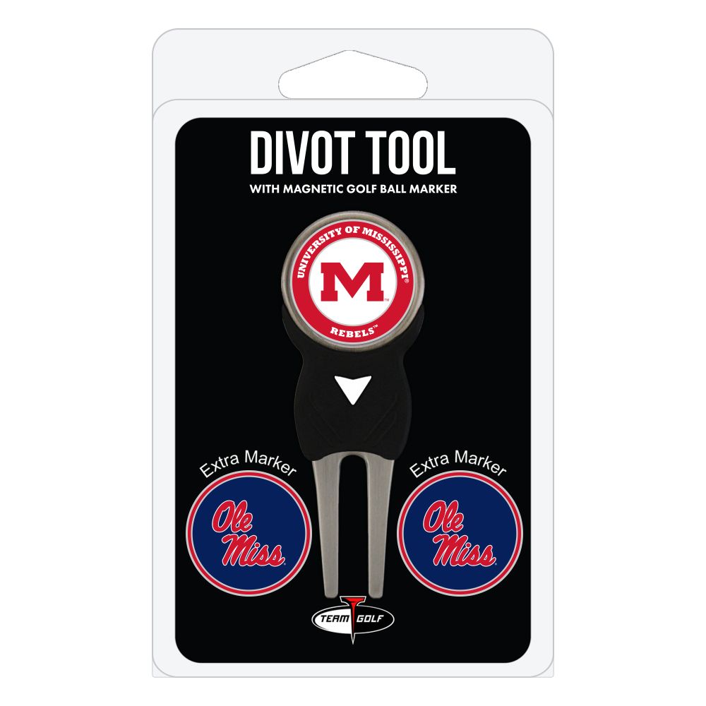 Mississippi Rebels Divot Tool Pack - Signature tool w/ 3 markers Add some team pride to your game on the green with the Team Golf? Divot Tool and Marker Set. This set includes three double-sided, enamel magnetic markers that feature the team logo and wordmark and a nickel-finished divot tool with the team logo. The magnetic markers are easily removed from and reattach to the divot tool, making it easy to mark your ball. Support your team with this team-inspired set.