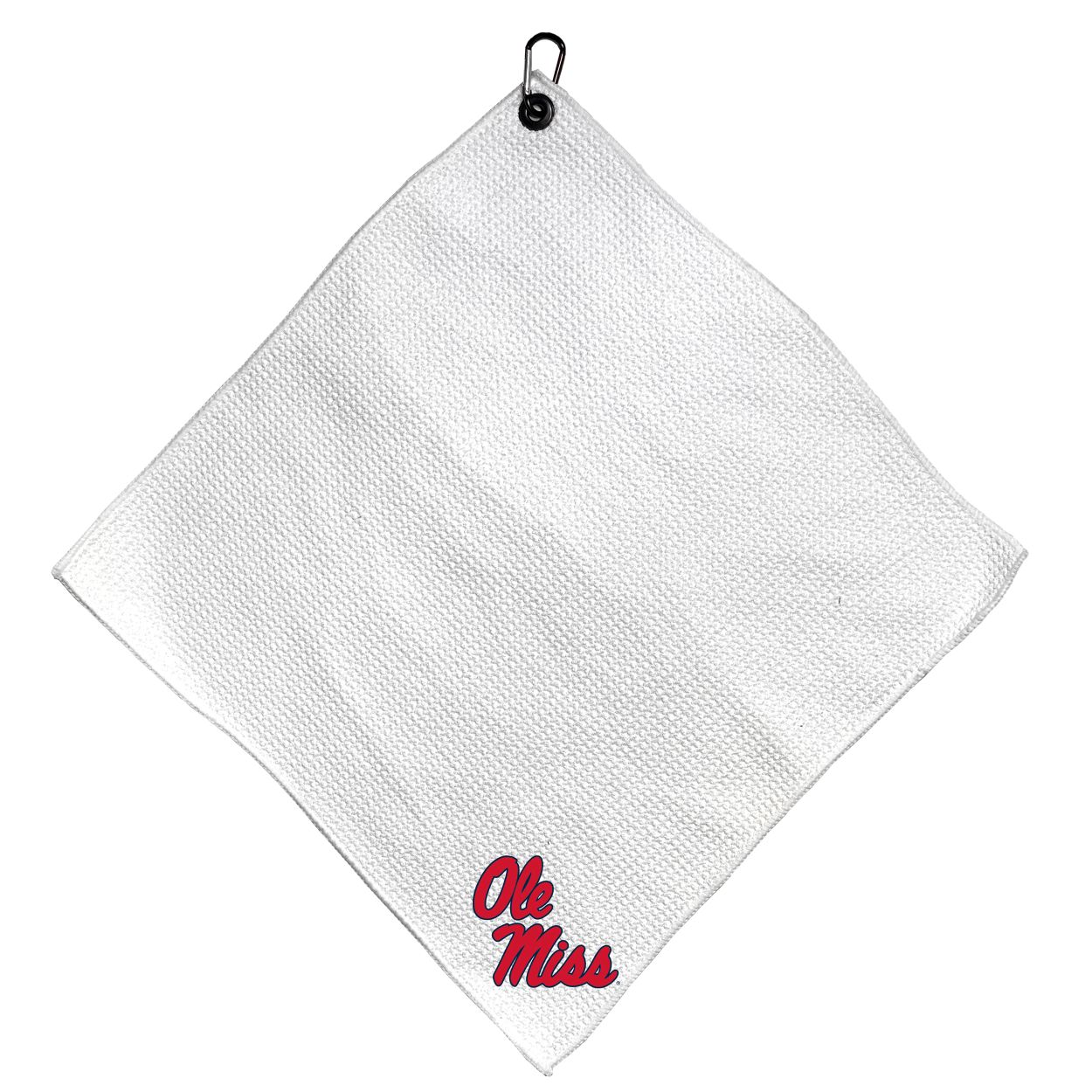 Mississippi Rebels Microfiber Small Towel - 15" x 15" (White) Carabiner attached, Measures approx. 15" x 15", Cleans without scratching club surface, Printed graphics, Material: 85% Polyester/15% Polyamide, Woven waffle fabric, Machine wash, tumble dry low, Officially licensed