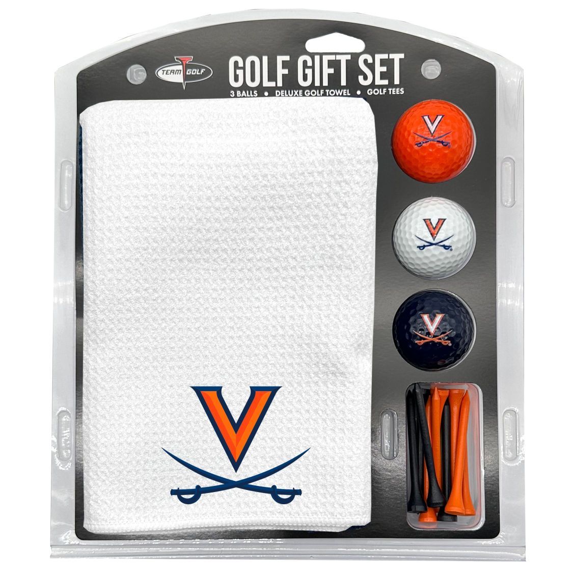 Virginia Cavaliers Microfiber Towel Gift Set - 16 x 40 (White) 16” x 40” printed logo towel, 3 different color golf balls, 12 golf tees, High quality digital print