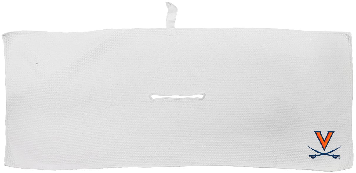 Virginia Cavaliers Large Microfiber Towel - 16" x 40" (White) Carabiner attachment system, Measures approx. 16'' x 40'', Sublimated graphics, Center slit measures approx. 6" in diameter, Fabric loop, Material: 85% Polyester/15% Polyamide, Machine wash, tumble dry low, Officially licensed