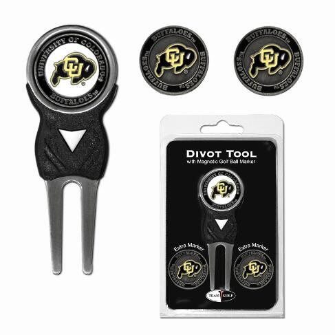Add some team pride to your game on the green with the Team Golf® Divot Tool and Marker Set. This set includes three double-sided, enamel magnetic markers that feature the team logo and wordmark and a nickel-finished divot tool with the team logo. The magnetic markers are easily removed from and reattach to the divot tool, making it easy to mark your ball. Support your team with this team-inspired set.