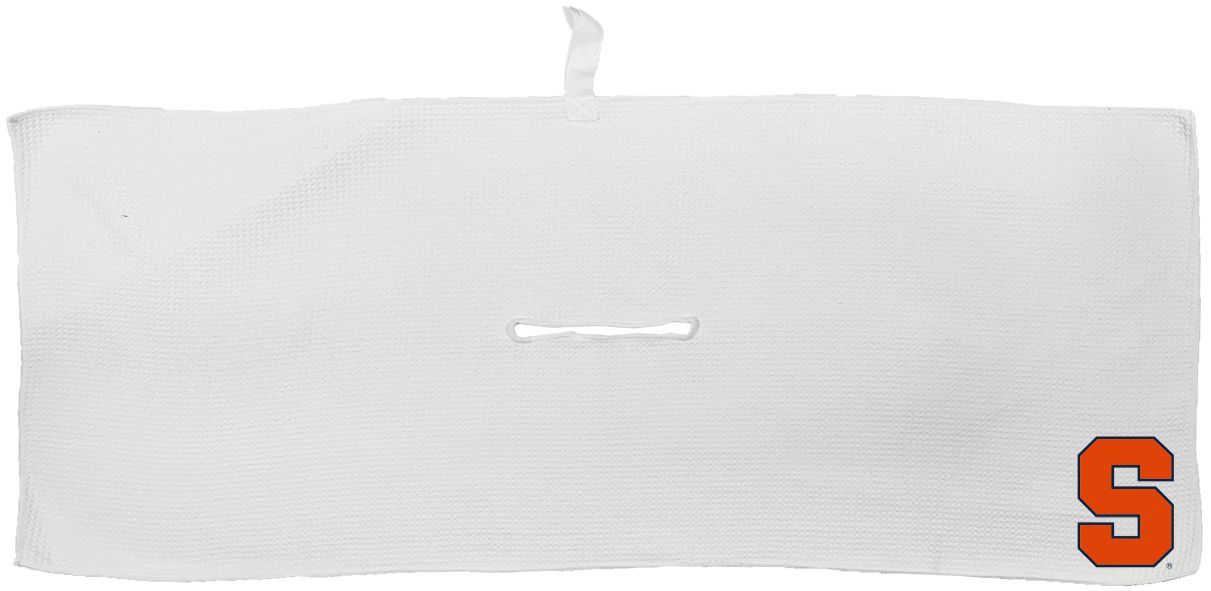 Syracuse Orange Large Microfiber Towel - 16" x 40" (White) Carabiner attachment system, Measures approx. 16'' x 40'', Sublimated graphics, Center slit measures approx. 6" in diameter, Fabric loop, Material: 85% Polyester/15% Polyamide, Machine wash, tumble dry low, Officially licensed