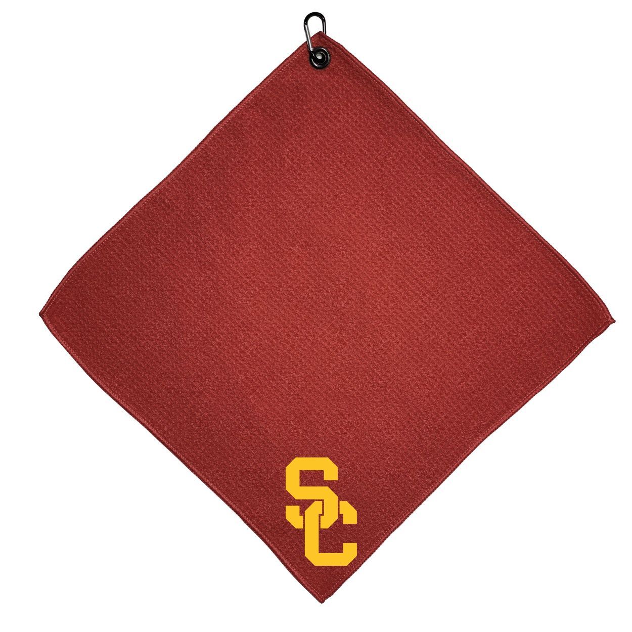 USC Trojans Microfiber Towel - 15" x 15" (Colored) Carabiner attached, Measures approx. 15" x 15", Cleans without scratching club surface, Printed graphics, Material: 85% Polyester/15% Polyamide, Woven waffle fabric, Machine wash, tumble dry low, Officially licensed