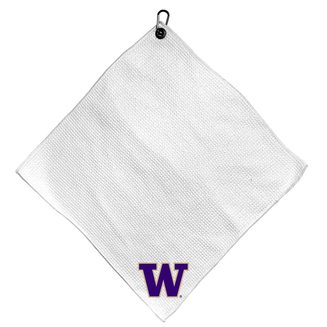 Washington Huskies Microfiber Small Towel - 15" x 15" (White) Carabiner attached, Measures approx. 15" x 15", Cleans without scratching club surface, Printed graphics, Material: 85% Polyester/15% Polyamide, Woven waffle fabric, Machine wash, tumble dry low, Officially licensed