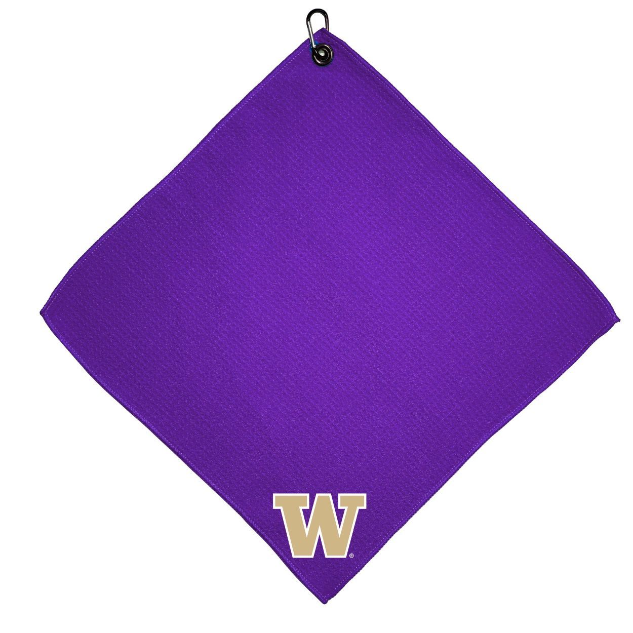 Washington Huskies Microfiber Towel - 15" x 15" (Colored) Carabiner attached, Measures approx. 15" x 15", Cleans without scratching club surface, Printed graphics, Material: 85% Polyester/15% Polyamide, Woven waffle fabric, Machine wash, tumble dry low, Officially licensed
