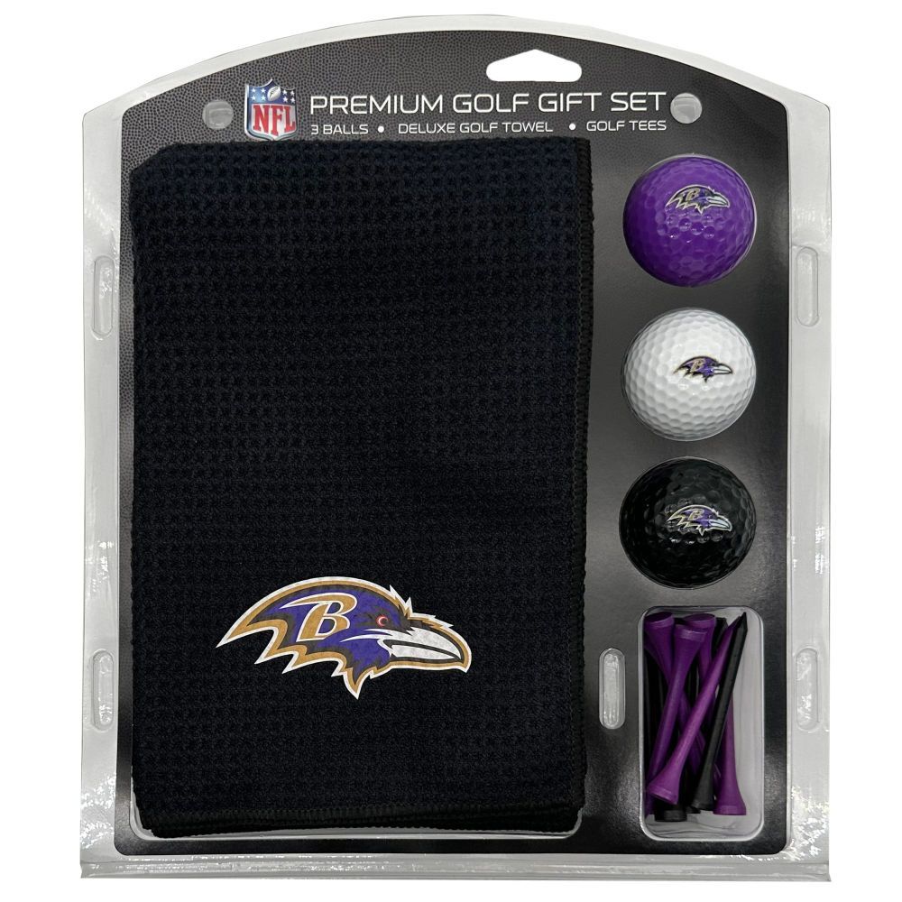 Baltimore Ravens Microfiber Towel Gift Set - 16 x 40 (Colored) 16” x 40” printed logo towel, 3 different color golf balls, 12 golf tees, High quality digital print