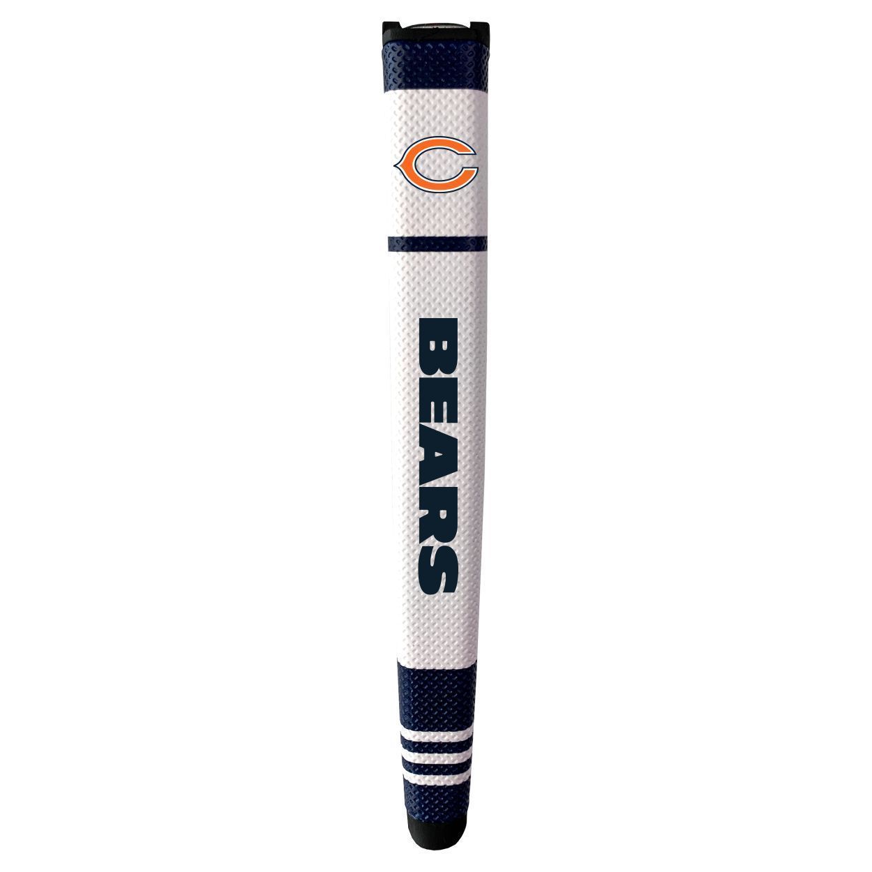 Chicago Bears Putter Grip (White with colored stripes) Durable rubber construction, Measures approx. 12.5" x 3.5" x 2", Printed graphics, Soft polyurethane surface, Includes removable ball marker, Debossed design, Material: 85% Rubber/15% PVC
