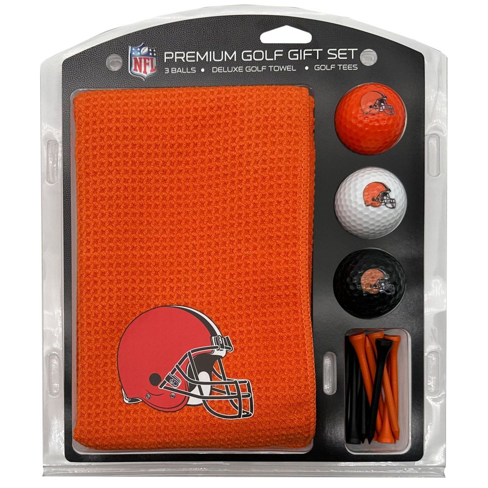 Cleveland Browns Microfiber Towel Gift Set - 16 x 40 (Colored) 16” x 40” printed logo towel, 3 different color golf balls, 12 golf tees, High quality digital print