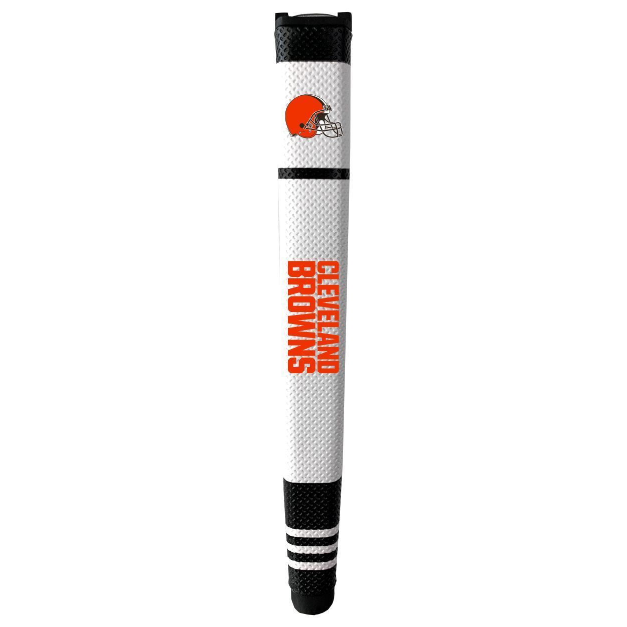 Cleveland Browns Putter Grip (White with colored stripes) Durable rubber construction, Measures approx. 12.5" x 3.5" x 2", Printed graphics, Soft polyurethane surface, Includes removable ball marker, Debossed design, Material: 85% Rubber/15% PVC