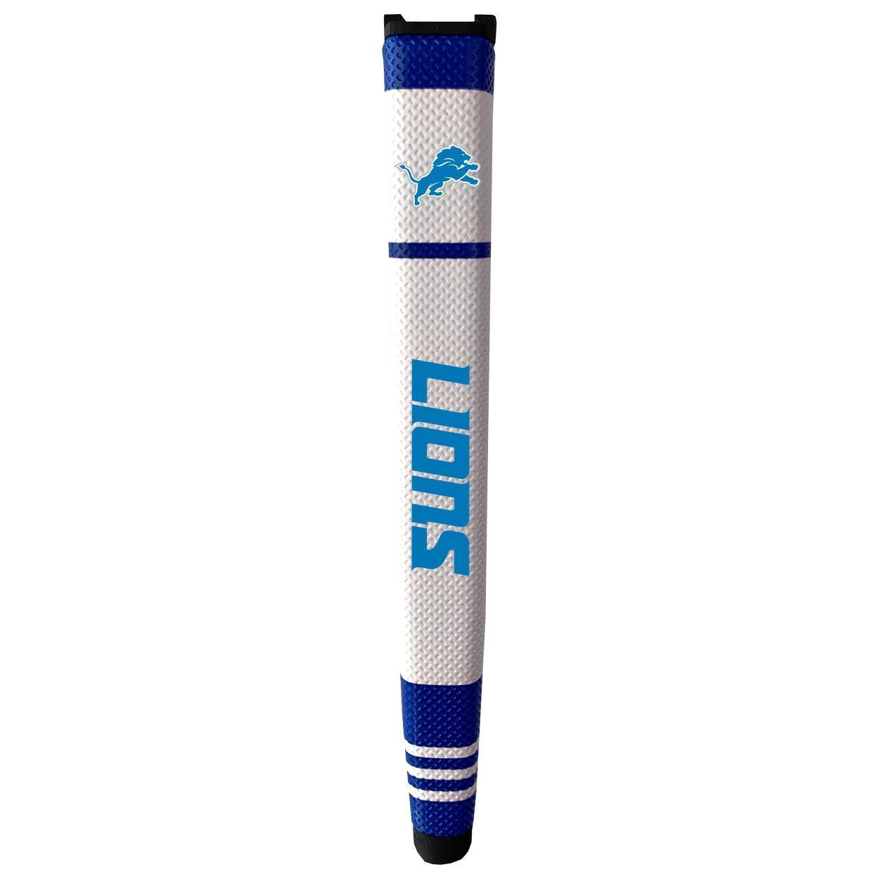 Detroit Lions Putter Grip (White with colored stripes) Durable rubber construction, Measures approx. 12.5" x 3.5" x 2", Printed graphics, Soft polyurethane surface, Includes removable ball marker, Debossed design, Material: 85% Rubber/15% PVC