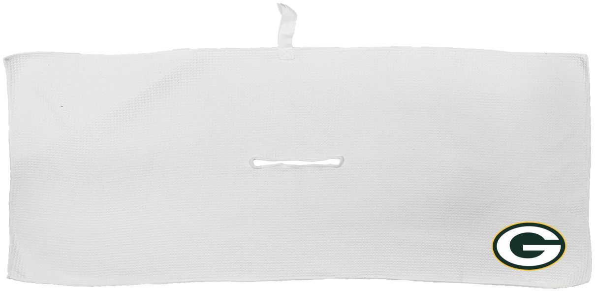 Green Bay Packers Large Microfiber Towel - 16" x 40" (White) Carabiner attachment system, Measures approx. 16'' x 40'', Sublimated graphics, Center slit measures approx. 6" in diameter, Fabric loop, Material: 85% Polyester/15% Polyamide, Machine wash, tumble dry low, Officially licensed