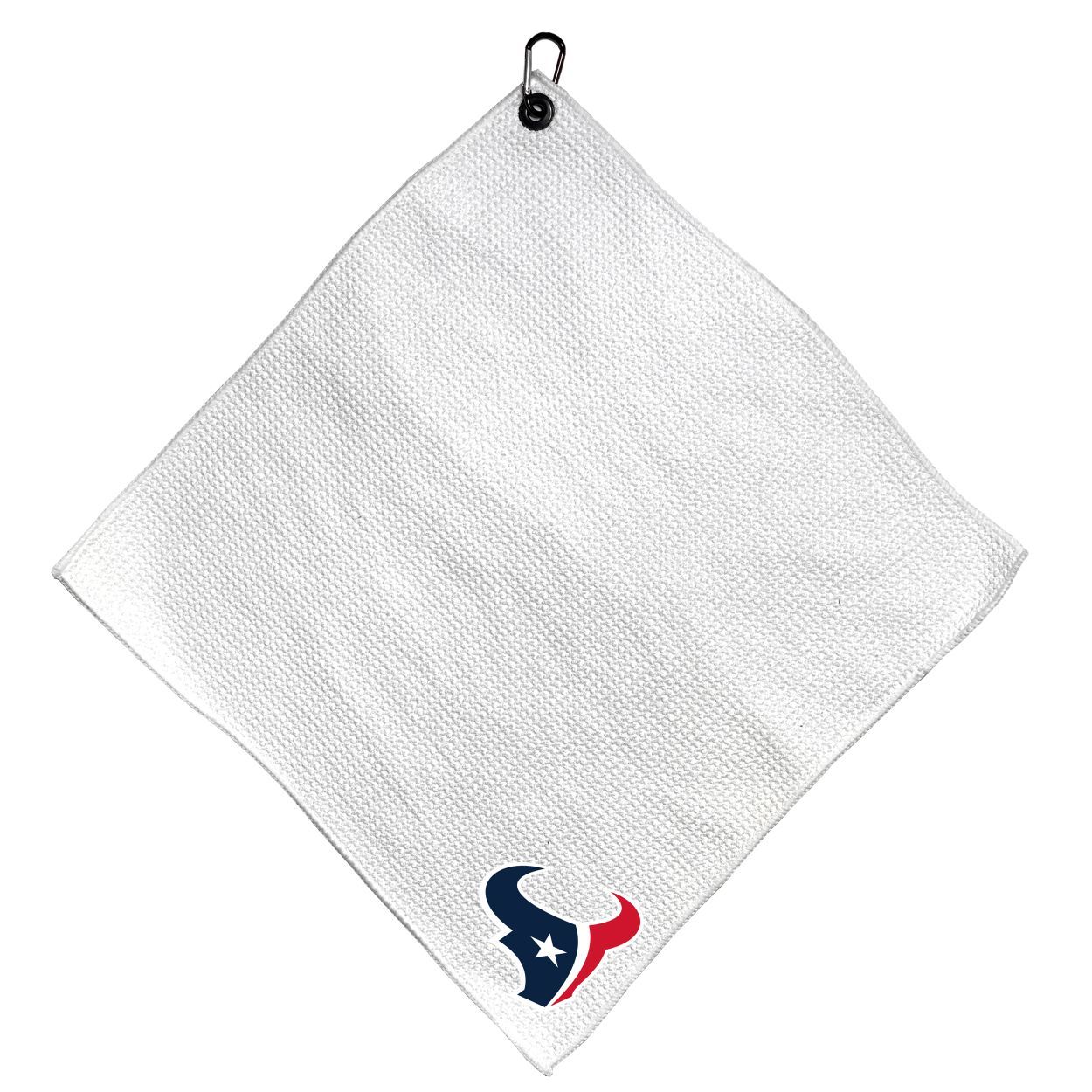 Houston Texans Microfiber Small Towel - 15" x 15" (White) Carabiner attached, Measures approx. 15" x 15", Cleans without scratching club surface, Printed graphics, Material: 85% Polyester/15% Polyamide, Woven waffle fabric, Machine wash, tumble dry low, Officially licensed