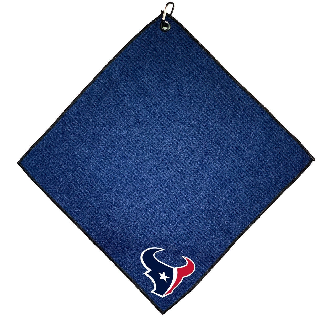 Houston Texans Microfiber Towel - 15" x 15" (Colored) Carabiner attached, Measures approx. 15" x 15", Cleans without scratching club surface, Printed graphics, Material: 85% Polyester/15% Polyamide, Woven waffle fabric, Machine wash, tumble dry low, Officially licensed