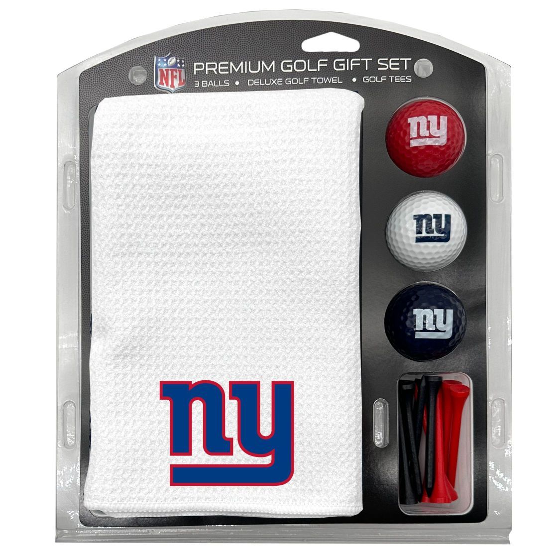 New York Giants Microfiber Towel Gift Set - 16 x 40 (White) 16” x 40” printed logo towel, 3 different color golf balls, 12 golf tees, High quality digital print