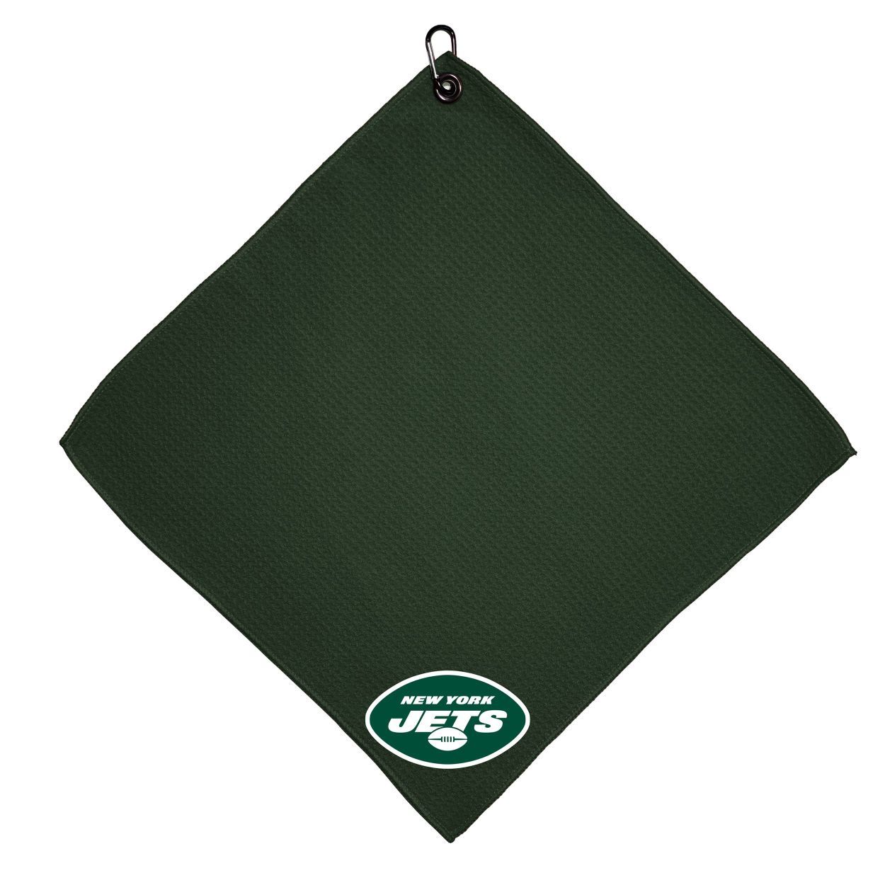 New York Jets Microfiber Towel - 15" x 15" (Colored) Carabiner attached, Measures approx. 15" x 15", Cleans without scratching club surface, Printed graphics, Material: 85% Polyester/15% Polyamide, Woven waffle fabric, Machine wash, tumble dry low, Officially licensed