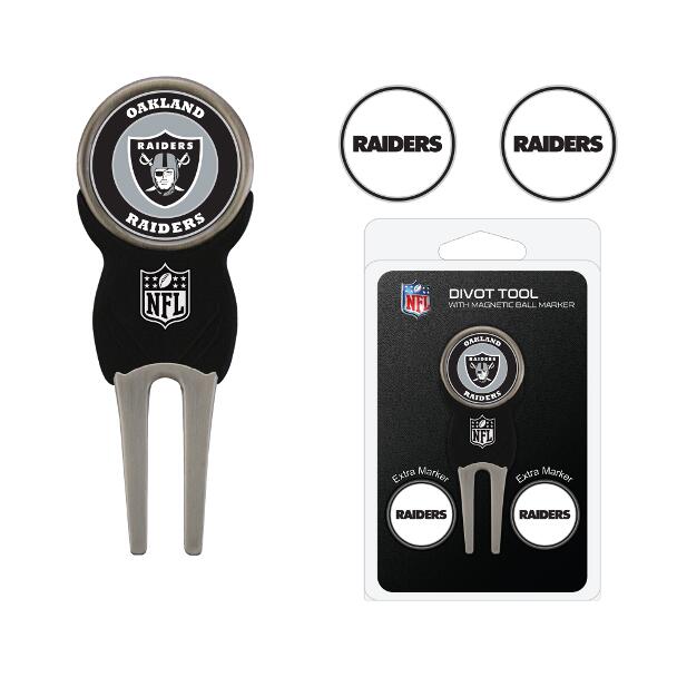 Add some team pride to your game on the green with the Team Golf® Divot Tool and Marker Set. This set includes three double-sided, enamel magnetic markers that feature the team logo and wordmark and a nickel-finished divot tool with the team logo. The magnetic markers are easily removed from and reattach to the divot tool, making it easy to mark your ball. Support your team with this team-inspired set.