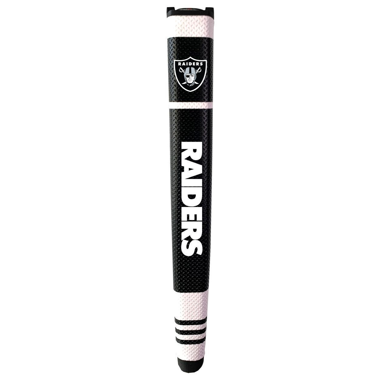 Las Vegas Raiders Putter Grip (Colored with white stripes) Durable rubber construction, Measures approx. 12.5" x 3.5" x 2", Printed graphics, Soft polyurethane surface, Includes removable ball marker, Debossed design, Material: 85% Rubber/15% PVC