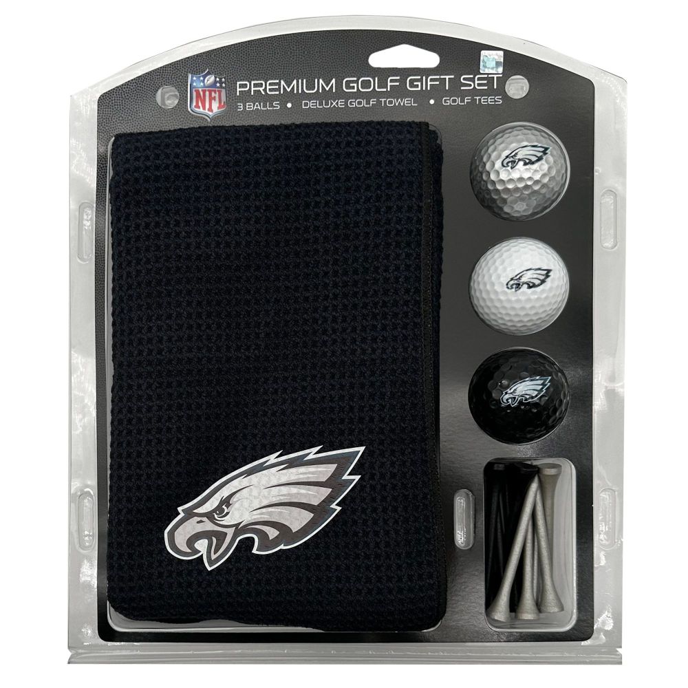 Philadelphia Eagles Microfiber Towel Gift Set - 16 x 40 (Colored) 16” x 40” printed logo towel, 3 different color golf balls, 12 golf tees, High quality digital print