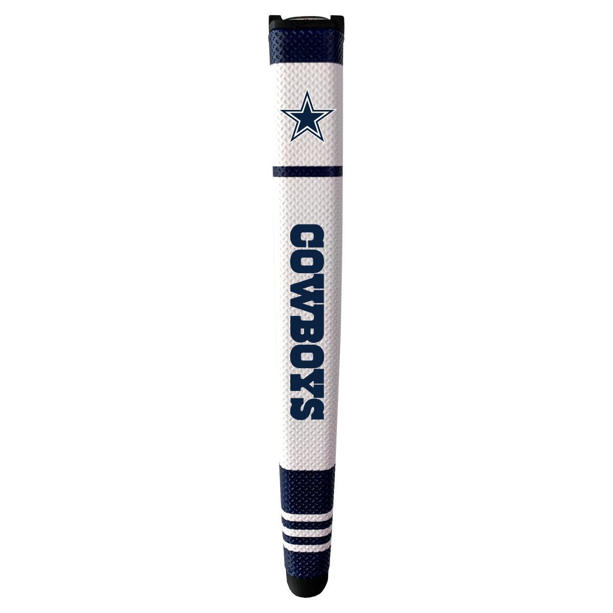 Dallas Cowboys Putter Grip (White with colored stripes) Durable rubber construction, Measures approx. 12.5" x 3.5" x 2", Printed graphics, Soft polyurethane surface, Includes removable ball marker, Debossed design, Material: 85% Rubber/15% PVC