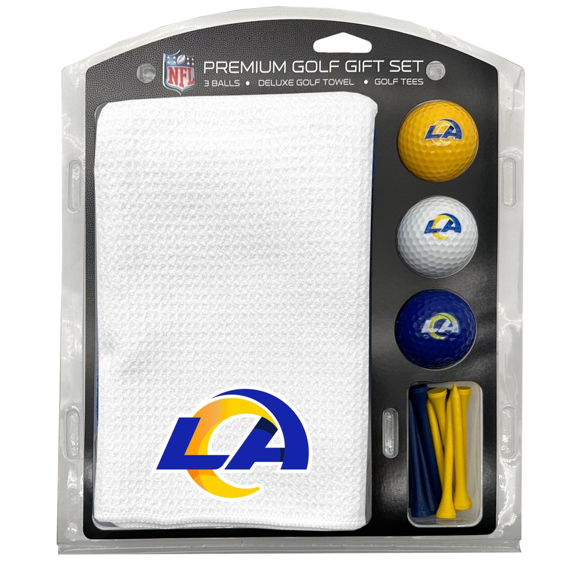 Los Angeles Rams Microfiber Towel Gift Set - 16 x 40 (White) 16” x 40” printed logo towel, 3 different color golf balls, 12 golf tees, High quality digital print