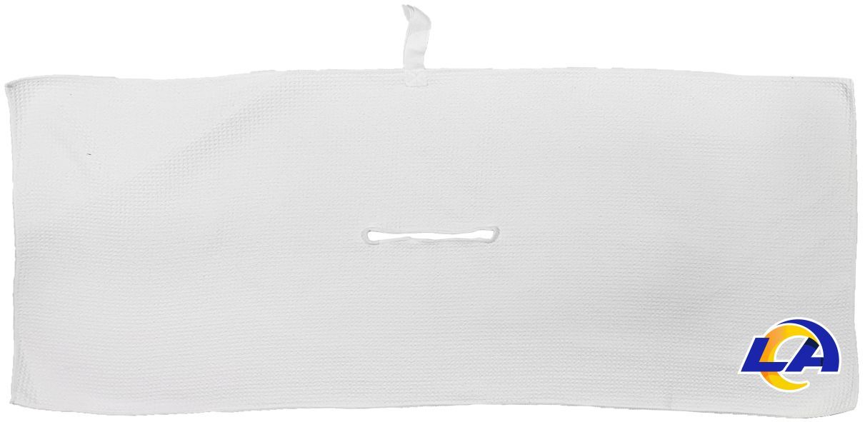 Los Angeles Rams Large Microfiber Towel - 16" x 40" (White) Carabiner attachment system, Measures approx. 16'' x 40'', Sublimated graphics, Center slit measures approx. 6" in diameter, Fabric loop, Material: 85% Polyester/15% Polyamide, Machine wash, tumble dry low, Officially licensed