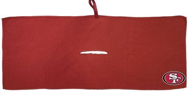 San Francisco 49ers Large Microfiber Towel - 16" x 40" (Colored) Carabiner attachment system, Measures approximately 16'' x 40'', Sublimated graphics, Material: 85% Polyester/15% Polyamide, Machine wash, Officially licensed
