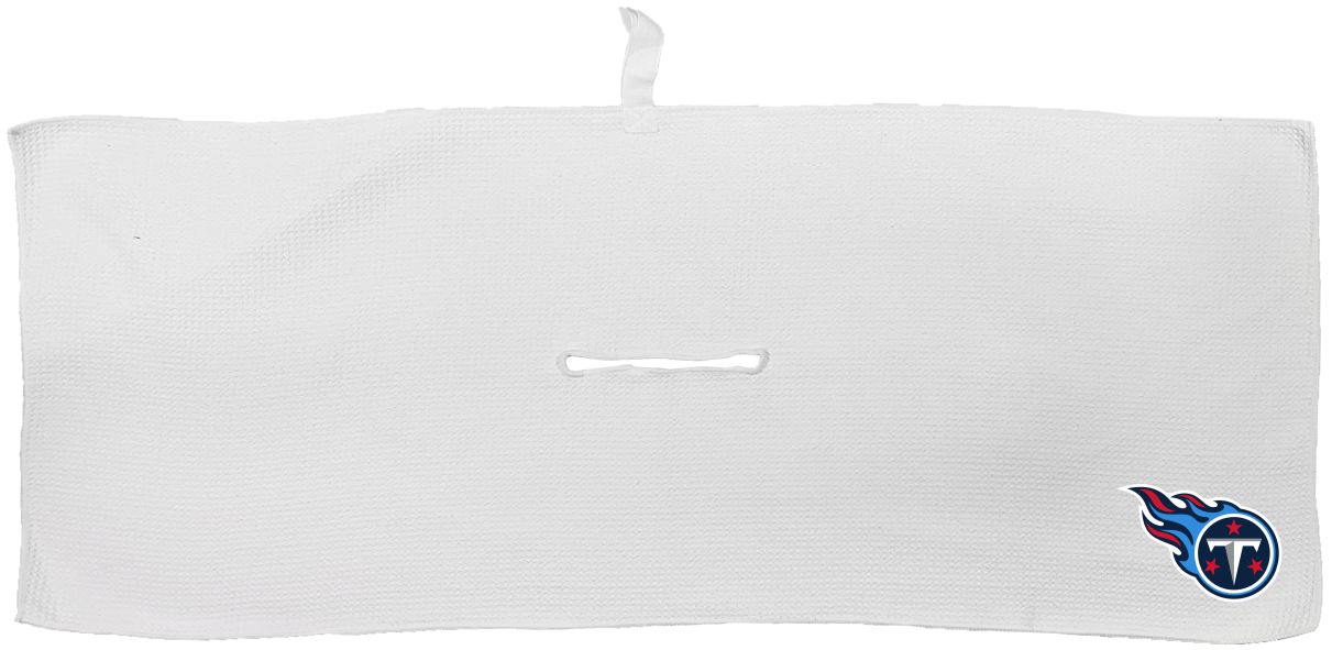 Tennessee Titans Large Microfiber Towel - 16" x 40" (White) Carabiner attachment system, Measures approx. 16'' x 40'', Sublimated graphics, Center slit measures approx. 6" in diameter, Fabric loop, Material: 85% Polyester/15% Polyamide, Machine wash, tumble dry low, Officially licensed