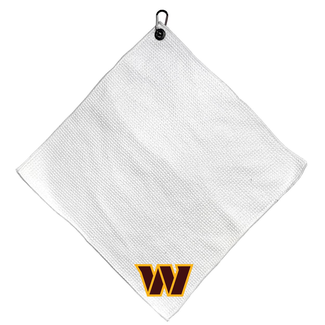 Washington Commanders Microfiber Small Towel - 15" x 15" (White) Carabiner attached, Measures approx. 15" x 15", Cleans without scratching club surface, Printed graphics, Material: 85% Polyester/15% Polyamide, Woven waffle fabric, Machine wash, tumble dry low, Officially licensed