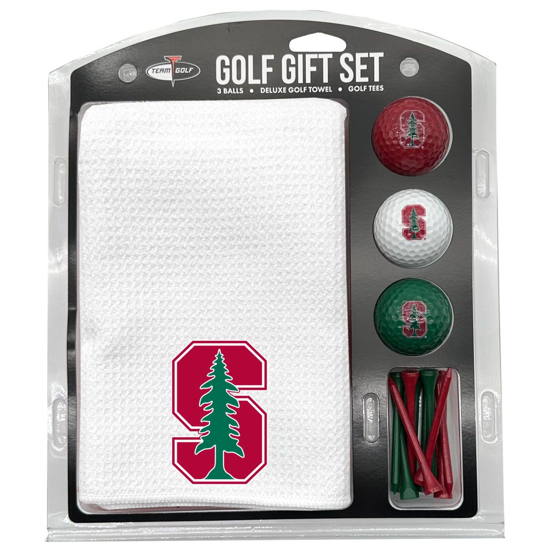 Stanford Cardinal Microfiber Towel Gift Set - 16 x 40 (White) 16” x 40” printed logo towel, 3 different color golf balls, 12 golf tees, High quality digital print