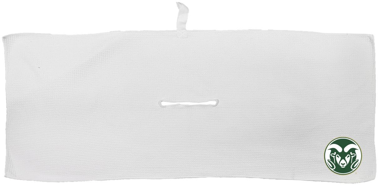 Colorado State Rams Large Microfiber Towel - 16" x 40" (White) Carabiner attachment system, Measures approx. 16'' x 40'', Sublimated graphics, Center slit measures approx. 6" in diameter, Fabric loop, Material: 85% Polyester/15% Polyamide, Machine wash, tumble dry low, Officially licensed