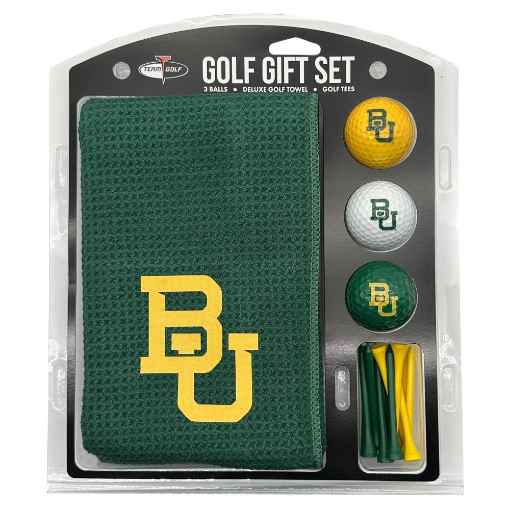 Baylor Bears Microfiber Towel Gift Set - 16 x 40 (Colored) 16” x 40” printed logo towel, 3 different color golf balls, 12 golf tees, High quality digital print