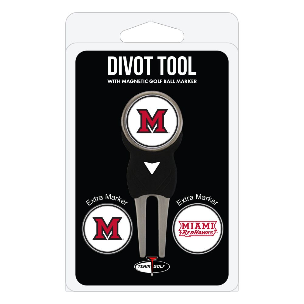Miami Of Ohio Redhawks Divot Tool Pack - Signature tool w/ 3 markers Add some team pride to your game on the green with the Team Golf? Divot Tool and Marker Set. This set includes three double-sided, enamel magnetic markers that feature the team logo and wordmark and a nickel-finished divot tool with the team logo. The magnetic markers are easily removed from and reattach to the divot tool, making it easy to mark your ball. Support your team with this team-inspired set.