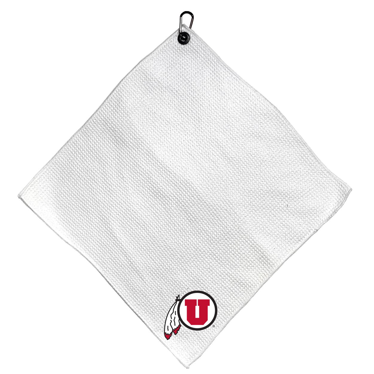 Utah Utes Microfiber Small Towel - 15" x 15" (White) Carabiner attached, Measures approx. 15" x 15", Cleans without scratching club surface, Printed graphics, Material: 85% Polyester/15% Polyamide, Woven waffle fabric, Machine wash, tumble dry low, Officially licensed
