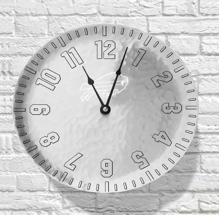 Stay on schedule while showing off your team pride with this striking Wall Clock. Crafted from durable aluminum and measuring 9" in diameter, it features a sleek design with hand-hammered numbers and an engraved team logo. Perfect for your home, office, or fan cave, it's a stylish way to count down the hours until game time.