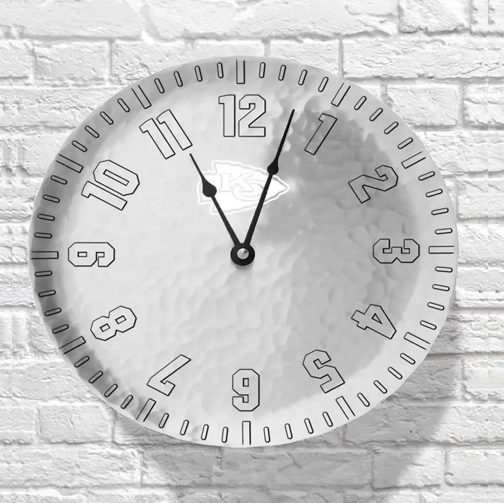 Stay on schedule while showing off your team pride with this striking Wall Clock. Crafted from durable aluminum and measuring 9" in diameter, it features a sleek design with hand-hammered numbers and an engraved team logo. Perfect for your home, office, or fan cave, it's a stylish way to count down the hours until game time.